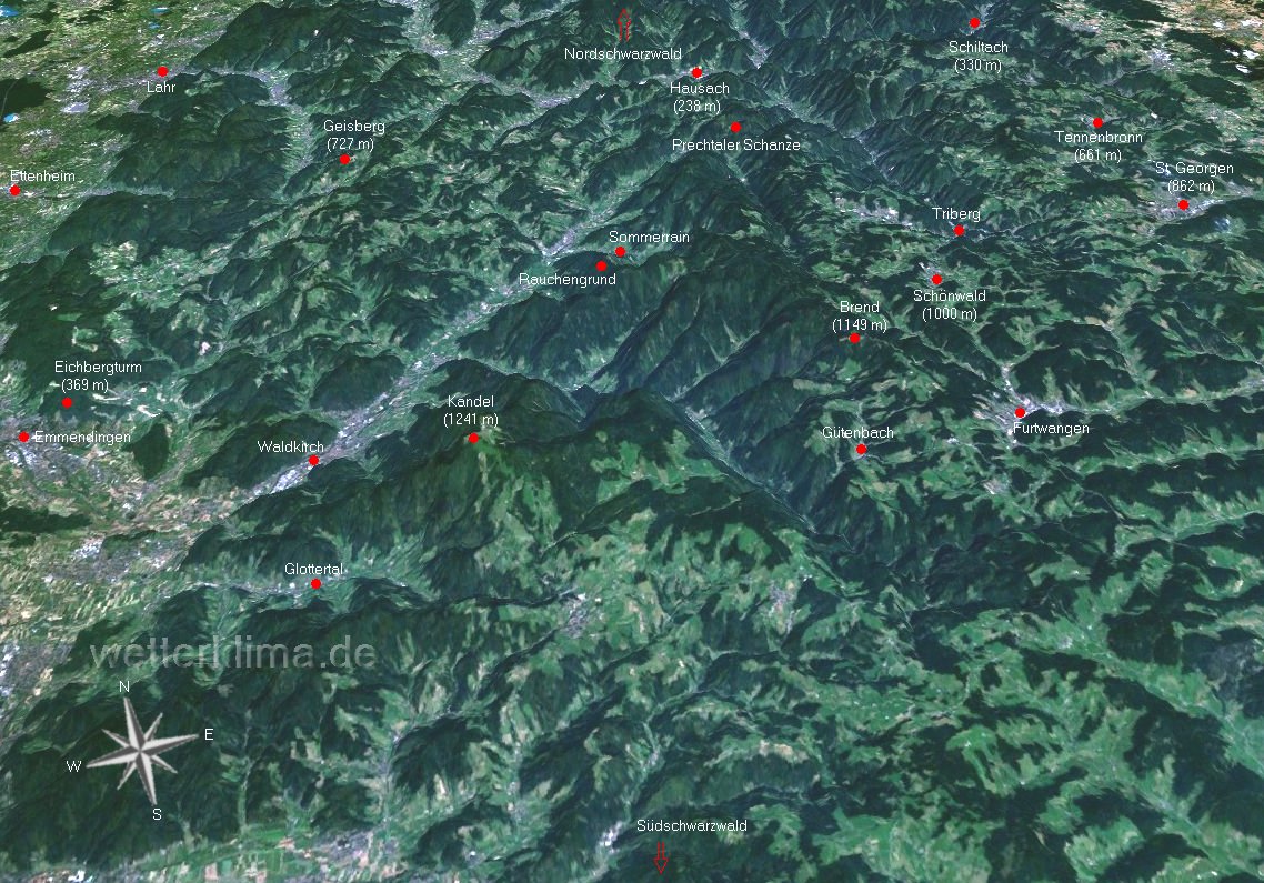 Furtwangen Kandel Gütenbach Schönwald Tennenbronn Schiltach Lahr Südschwarzwald Emmendingen Glottertal Nordschwarzwald Waldkirch St. Georgen Ettenheim Geisberg Sommerrain Rauchengrund Hausach Eichbergturm Brend Prechtaler Schanze Triberg