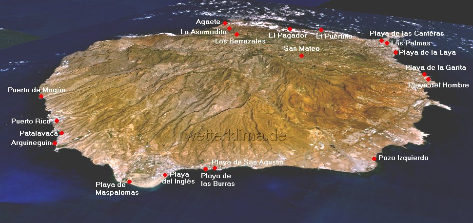 Las Palmas Las Canteras Playa del Inglés Playa de Maspalomas Puerto Rico San Mateo Playa de las Burras Arguineguin Patalavaca El Pagador Agaete La Asomadita Los Berrazales El Puertillo Playa de la Laya Playa de la Garita Playa del Hombre Pozo Izquierdo Playa de San Agustin Puerto de Mogán