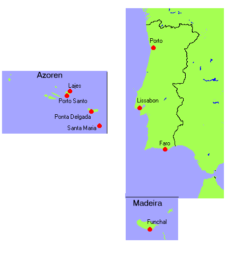 Funchal/S. Catarina Faro Lajes Lisboa/Portela Ponta Delgada/Nordela Porto/Pedras Rubras Porto Santo Santa Maria