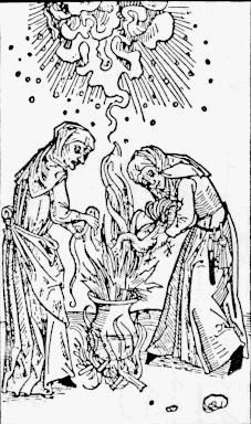 Da hatte es das Mittelalter doch einfacher: Hexen konnten das Wetter machen. In einen Kessel mit siedendem Wasser kam Ungenießbares wie Schlangen, Kröten und ein Hahn. Das Ganze wurde unter beständigem Rühren mit Zaubersprüchen gewürzt. Schließlich stiegen Dämpfe zum Himmel auf, die zu Gewitterwolken wurden und mit Hagel, Sturm und Überschwemmungen die Menschen bedrängten. Den Blitz nicht zu vergessen, der bevorzugt in den Kirchturm einschlug und das Dorf in Brand setzte. Nahte sich das Unwetter, halfen nur noch Wetterläuten, Wetterkreuze vor den Dörfern und Gebete an die verschiedenen Wetterpatrone. Später versuchte man es noch mit dem Wetterschießen, zunächst mit Musketen, dann mit Kanonen. Nach einem Unwetter mußten die Übeltäterinnen bestraft werden. Die Suche nach Hexen für den Scheiterhaufen war nicht weiter schwierig, es gab genügend hilfreiche Mitmenschen.