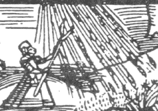 Nicht ganz so kompliziert wie Hagel ließ sich Regen machen: hier genügten Sprüche mit einem Zauberstab, wie man aus der Abbildung sieht (Auszug aus Peter Binsfelds Hexentraktat 1589):