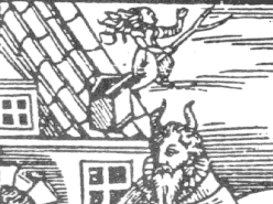 Dazu mußte man aber erst einmal einen intellektuellen Salto drehen, denn Hexen waren im christlichen Weltbild zunächst nicht vorgesehen. Ursprünglich waren sie Hain- oder Waldpriesterinnen, althochdeutsch "hagzissa". Weil heidnische Überreste auch nach der Christianisierung noch in den Köpfen waberten, wurden die Hagzissa kurzerhand zu Gehilfinnen des Teufels erklärt, den Hexen. Und die verdienstvolle Walpurga wurde zum 1. Mai heilig gesprochen. Offenbar machte aber die "Nacht der Walpurga" auf die Hexen keinen sonderlichen Eindruck. Sie düsten weiterhin auf ihren Besen unter Kreischen und lautem Kichern zu ihren Treffpunkten. Dabei waren es gar keine Besen, sondern Astgabeln, wie das "Hexentraktat" zeigt: